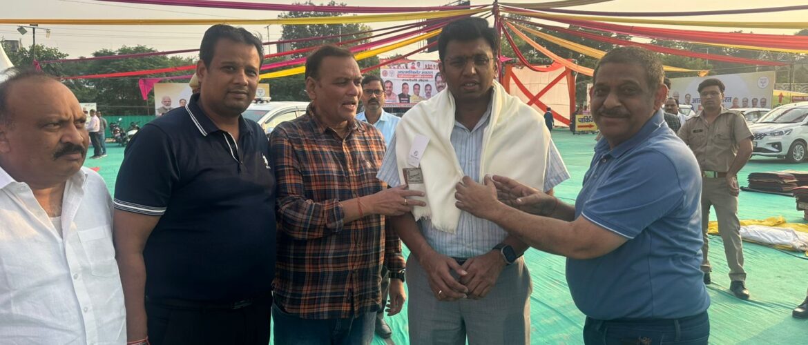 नेशनल चैम्बर का प्रतिनिधिमंडल अध्यक्ष संजय गोयल के नेतृत्व में यू0पी0 टेªड शो के अवसर पर आगरा के जिलाधिकारी श्री अरविंद मल्लप्पा बंगारी से मिला और उन्हें विजन 2047 पर प्रथम स्थान मिलने पर चैम्बर द्वारा सम्मानित किया गया।