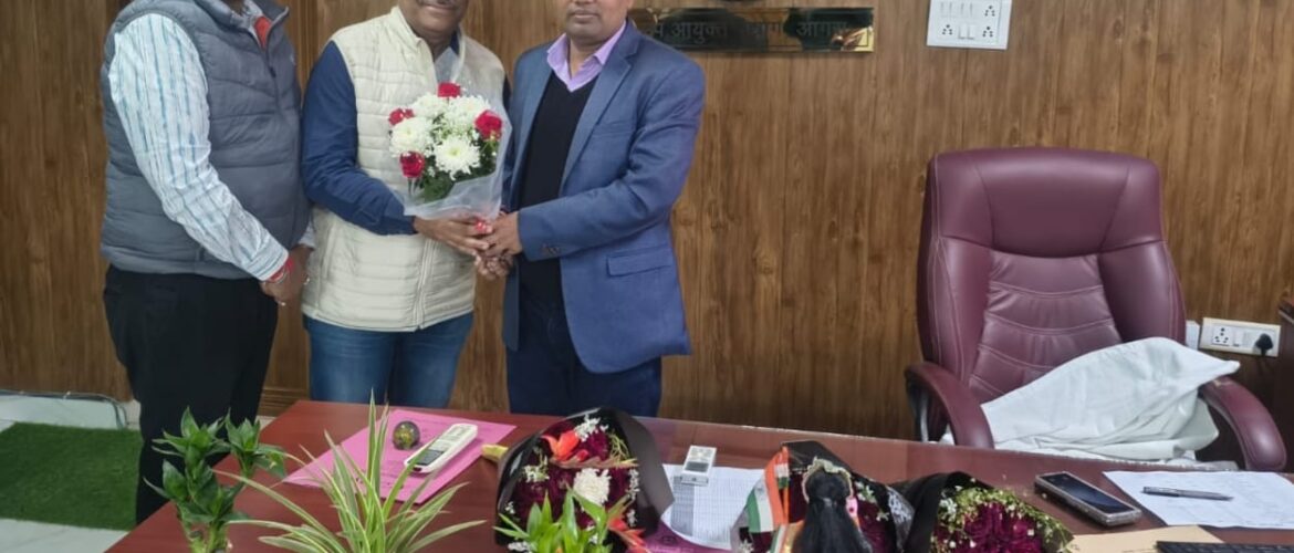 चैम्बर का प्रतिनिधिमंडल चैम्बर अध्यक्ष संजय गोयल व उपाध्यक्ष विवेक जैन द्वारा नवागत उपायुक्त उद्योग, श्री शैलेन्द्र सिंह जी उनके नवीन पदभार ग्रहण करने पर मिला। चैम्बर प्रतिनिधिमंडल द्वारा उपायुक्त उद्योग महोदय को आगरा के औद्योगिक वस्तुस्थिति से अवगत कराया गया। उपायुक्त उद्योग द्वारा चैम्बर के प्रतिनिधिमंडल को बहुत ही ध्यानपूर्वक सुना गया तथा औद्योगिक समास्याओं पर शीघ्र सकारात्मक कार्यवाही करने का आश्वासन दिया गया।